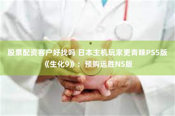 尽管《生化危机9:安魂曲》已宣布将于明年2月同步登陆Switch2及其他平台,但系列粉丝显然更青睐PlayStation 5版本,因为该版本的游戏体验将远胜于Switch2版。 根据日本亚马逊的数据显示,PS5各版本游戏已累计获得超过4600份预购订单股票配资客户好找吗,而Switch2各版本仅约1100份。 当然,这些数字并不能完全反映游戏发售后整体的销售情况,毕竟这仅是一家商店的销售数据。但目前已能预见,PS5版销量将大幅超越Switch2版。 《生化危机9:安魂曲》预定于 2026 年 ...