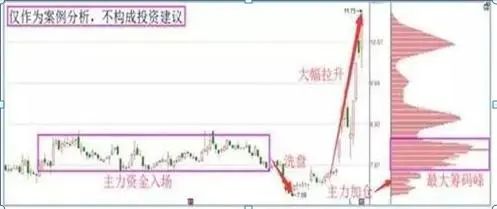 其实,主力吸筹的过程就是一个筹码转换的过程。在这个过程中,主力为买方,散户为卖方。这个过程换手率一般在300%-500%,并且不会出现成交量持续放大的过程。只有低位充分完成了吸筹,主力才会形成拉升,从而结束吸筹过程。而对应在筹码分布图中,则以筹码高度集中体现出来。
